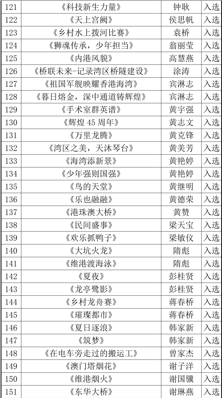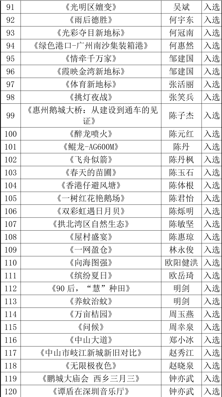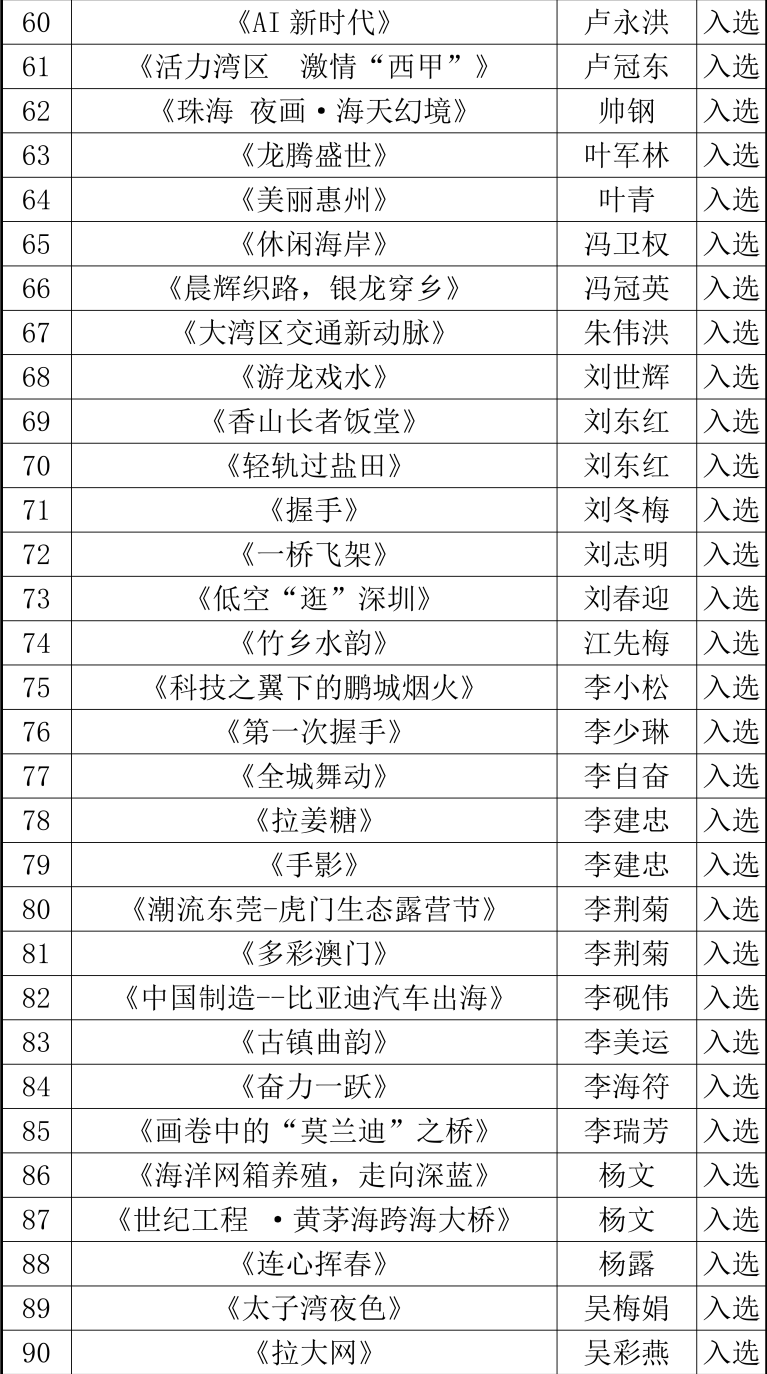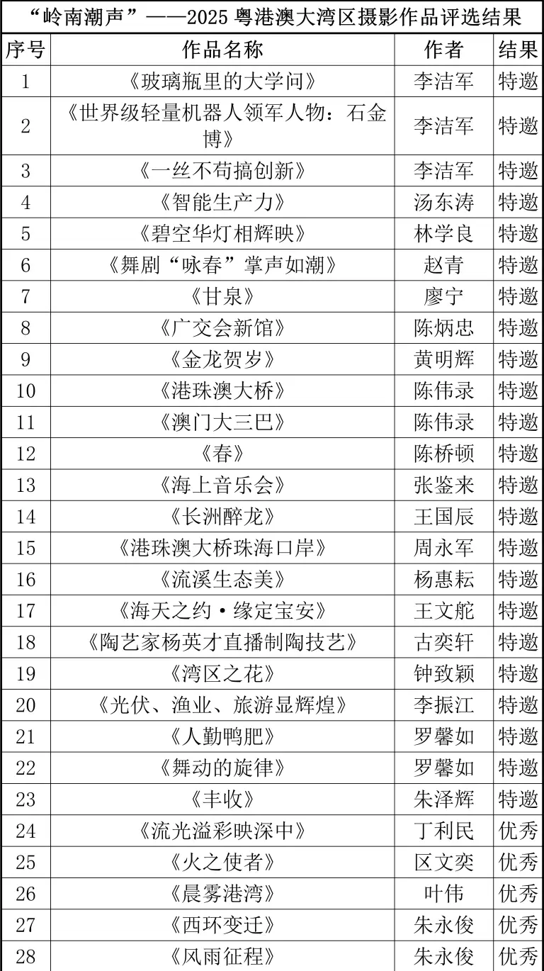 经组织推荐、初评、终评等程序,“岭南潮声——2025粤港澳大湾区摄影作品展”评选工作已于日前结束,现将评选结果予以公示。